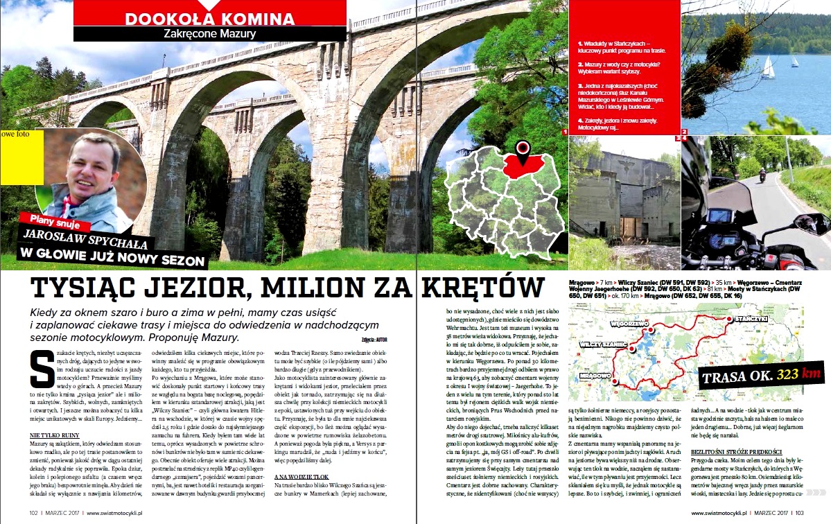 W numerze majowym "Świata Motocykli" jest fajny darmowy dodatek z 22 najlepszymi wg redakcji motocyklowymi trasami turystycznymi po Polsce. Ponieważ 1/3 z nich jest mojego skromnego autorstwa wiec polecam ten numer. (w kioskach od 15.05). Może się moto-turystom przydać.